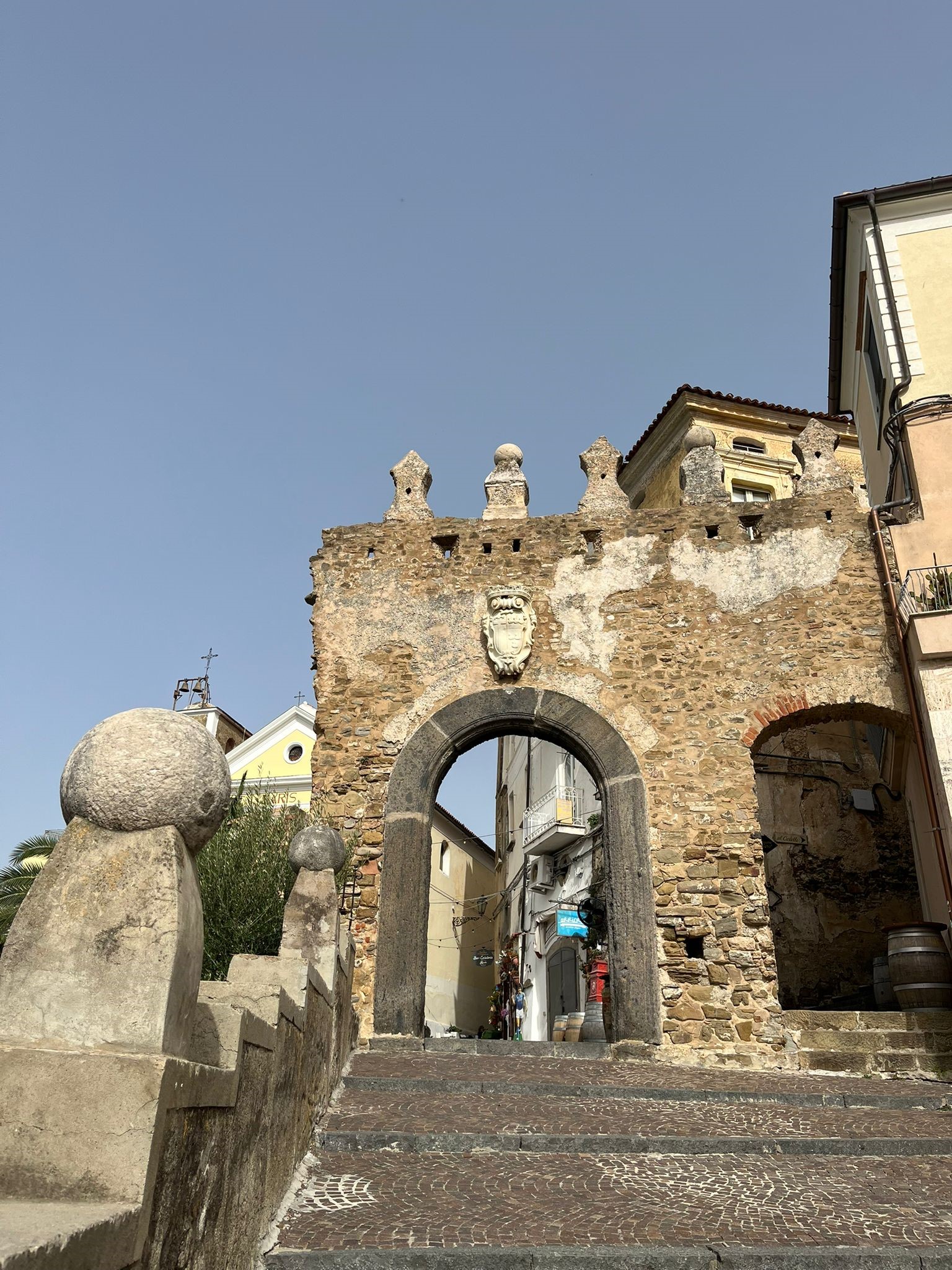 L’origine del Castello di Agropoli risale ai Greci Bizantini, che durante la guerra contro i Goti (535-553) occuparono e fortificarono il promontorio, a difesa degli approdi ai suoi lati. La sistemazione odierna è quella aragonese, messa in opera verso la fine del XV secolo. Il castello si presenta con una cinta muraria che racchiude un ampio cortile interno ed è dotato di torri di avvistamento e di una grande torre cilindrica, che è uno degli elementi più distintivi della struttura. La posizione strategica sulla collina, che consentiva di avvistare facilmente eventuali navi nemiche. L’ingresso dal castello presenta una porta con arco a tutto sesto ed ha un aspetto monumentale, sottolineato dall’uso del tufo pestano. All’interno troviamo la piazza d’armi, oggi adibita a giardino e a teatro. Sul lato settentrionale c’è una vasta sala, denominata “dei Francesi”; su quello orientale il palazzetto baronale, con ambienti di abitazione. Oggi il castello è una delle principali attrazioni turistiche di Agropoli, con una vista panoramica spettacolare sul mare e sulla città.