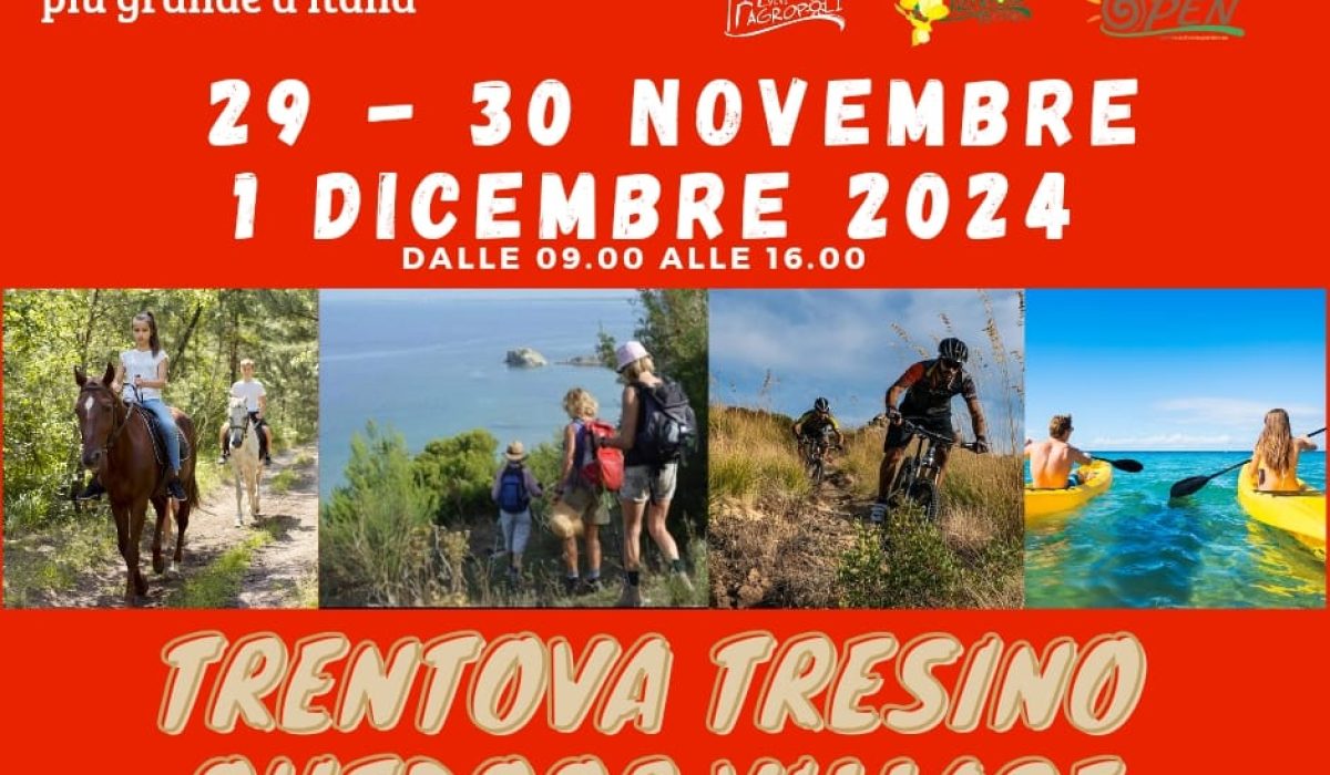 Nel weekend del 29-30 novembre 1° dicembre si terrà il “Trentova Tresino Outdoor Village”, organizzato dalla Città di Agropoli in collaborazione AOTA ‘Associazione Operatori Turistici Agropoli’, con un’ampia scelta di attività all’aria aperta, grazie anche al contributo di diverse realtà e associazioni che sono specializzate nel campo dell’outdoor.
